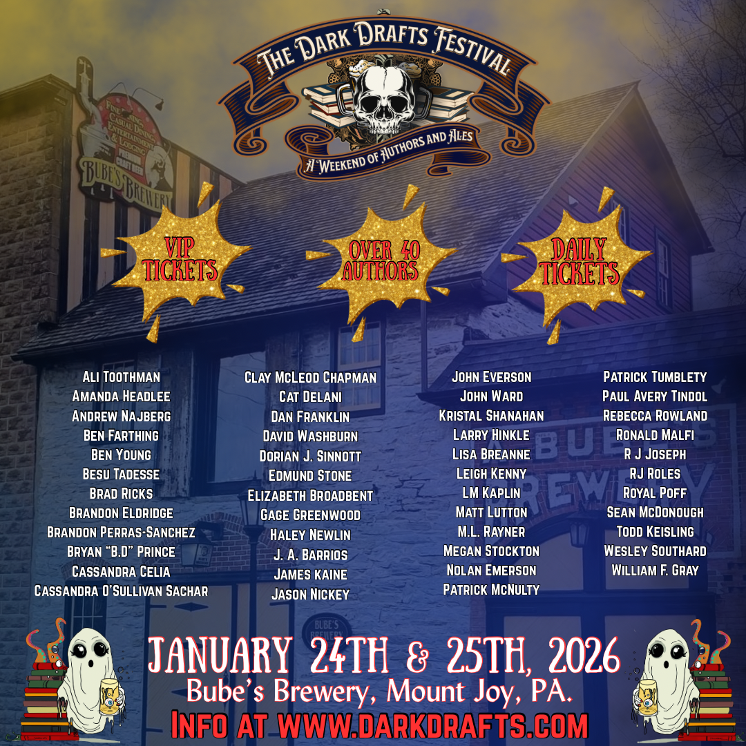 Step into a world of chilling tales and atmospheric ales at The Dark Drafts Festival on January 24th and 25th. Join us at the historic Bube’s Brewery for a spine-tingling weekend celebrating horror literature like never before. From exclusive VIP access to evening delights, this event offers something for every fan of the macabre. Meet your favorite authors, discover new reads, and enjoy a truly haunting experience.